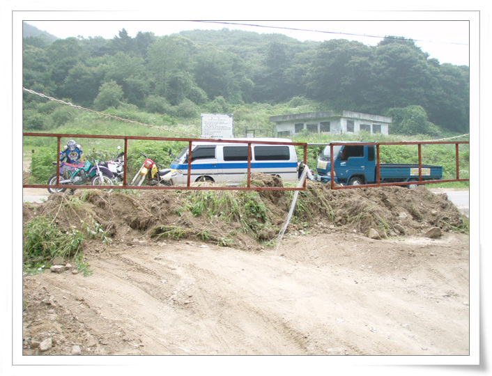 무더운 더위에도 관계없이 모여든 동호인들이 송구래미에 모여 들었습니다. 하지만 도착을 해보니 송구래미뿐이 아니라 산입구에 들어가는 모든 출입구를 차단 되있었습니다. 이게 왠일인가 싶어서 머리가 어질어질~~ 사실 군사지역보호시설이라서 할말은 막아놔도 할말은 없는 곳 이지만 씁쓸하더군요... 모든게 사실 우리 동호인들의 잘못과 무지에서 일어난 일이라고 생각이 됩니다 만, 동호인들의 대표를 맡은 협회에서 선수보호차원에서 군시설과 협의를 하지 못하였다는것도 조금은 아쉬운 부분이더군요. 협조 관계로 유지하였다면 이런일이 없었을듯...하다고 생각을 조심스럽게 해보았습니다. 우리나라 오토바이 쪽 미래는 갈길이 아주아주 멉니다....열씸히 달려 나가야 할듯 하군요....