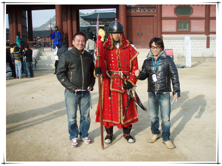 요시오 이케마치 와 EZURE 씨가 한국에 모든 일정을 마친 월요일날 서울 근교 경복궁과 용산 전쟁기념관 그리고 KBS본사를 견학하였습니다. 사실KBS견학은 예정에 없었지만 용산 전쟁기념관이 가는날이 장날이라 휴일이였습니다. 일본은 패전이후 자위대라는 군시설은 있지만 무장을 할수 없습니다. 그래서 일본인들이 한국에 군관련 시설에 굉장한 관심을 보이기도 합니다만, 유난히 어렸을때부터 비행기가 좋았다는 이케미치 씨와 코브라 헬리콥터를 보며 일본에 가져가고 싶다며 아이처럼 좋아하던 EZURE 씨 였습니다. KBS견학은 이은원KBS국장님의 도움으로 보도국과 버라이어티 현장을 간단하게 견학할수 있었습니다. 일정을 마친 그들은 말그대로 서울이 신기한 일본인 관광객모드로 이곳저곳에 흥미를 보이며 마지막 하루를 즐길수 있었습니다.