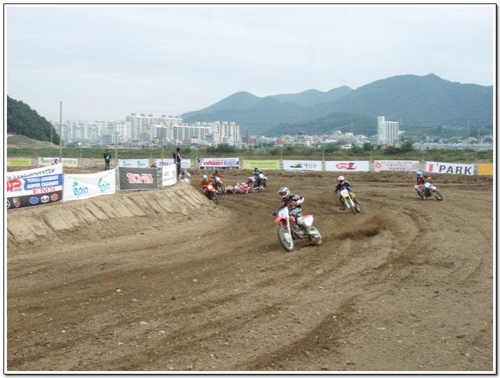 지루한 기다림의 출발~~~~~ 이번 코스에 전망대가 있어서...이곳저곳으 코스를 한눈에 볼수가 있었습니다. 날씨 좋은날에는 포항도 보인다고... 약간 실선으로 보일듯 말듯....코스 라인 보이시나요? 피니시라인... 2차전을 준비하는 선수들... 모든경기가 끝이 납니다...날씨가 시합이 딱 끝이나고 나니....소나기가 쏟아지더라는...^^;; 비가 언제왔냐는듯이 시상장소에서 타이어교환 이벤트가... 중이 제머리를 못깍는다고....저의 사진은 그저 여자랑찍은(?) 사진밖에 없지만 즐거운 경주시합이 되었습니다... 저의 순위는 125cc 로는 혼자만 완주하였고 27위에 기록을 남겼습니다. 그러나 순위와는 다르게 자신만의 이야기를 담고 왔습니다.