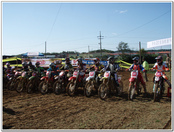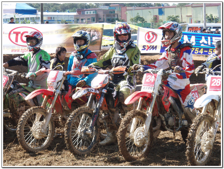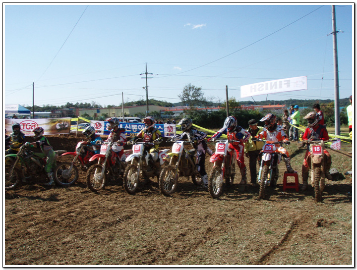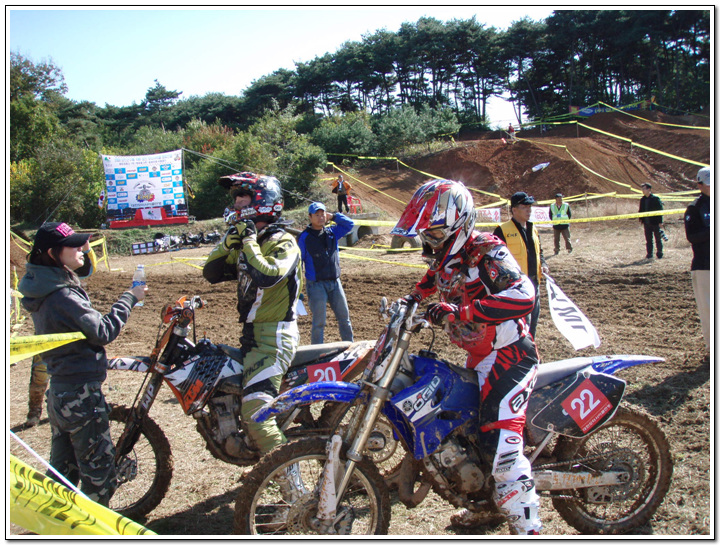 지루한 기다림의 출발~~~~~ 이번 코스에 전망대가 있어서...이곳저곳으 코스를 한눈에 볼수가 있었습니다. 날씨 좋은날에는 포항도 보인다고... 약간 실선으로 보일듯 말듯....코스 라인 보이시나요? 피니시라인... 2차전을 준비하는 선수들... 모든경기가 끝이 납니다...날씨가 시합이 딱 끝이나고 나니....소나기가 쏟아지더라는...^^;; 비가 언제왔냐는듯이 시상장소에서 타이어교환 이벤트가... 중이 제머리를 못깍는다고....저의 사진은 그저 여자랑찍은(?) 사진밖에 없지만 즐거운 경주시합이 되었습니다... 저의 순위는 125cc 로는 혼자만 완주하였고 27위에 기록을 남겼습니다. 그러나 순위와는 다르게 자신만의 이야기를 담고 왔습니다.
